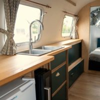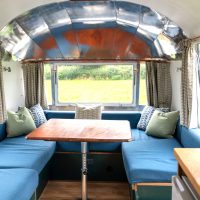 Airstream interior dimensions: 30 feet long (9.44 meters), 7’3” wide (2.25 m), 6’5” high (2 m)