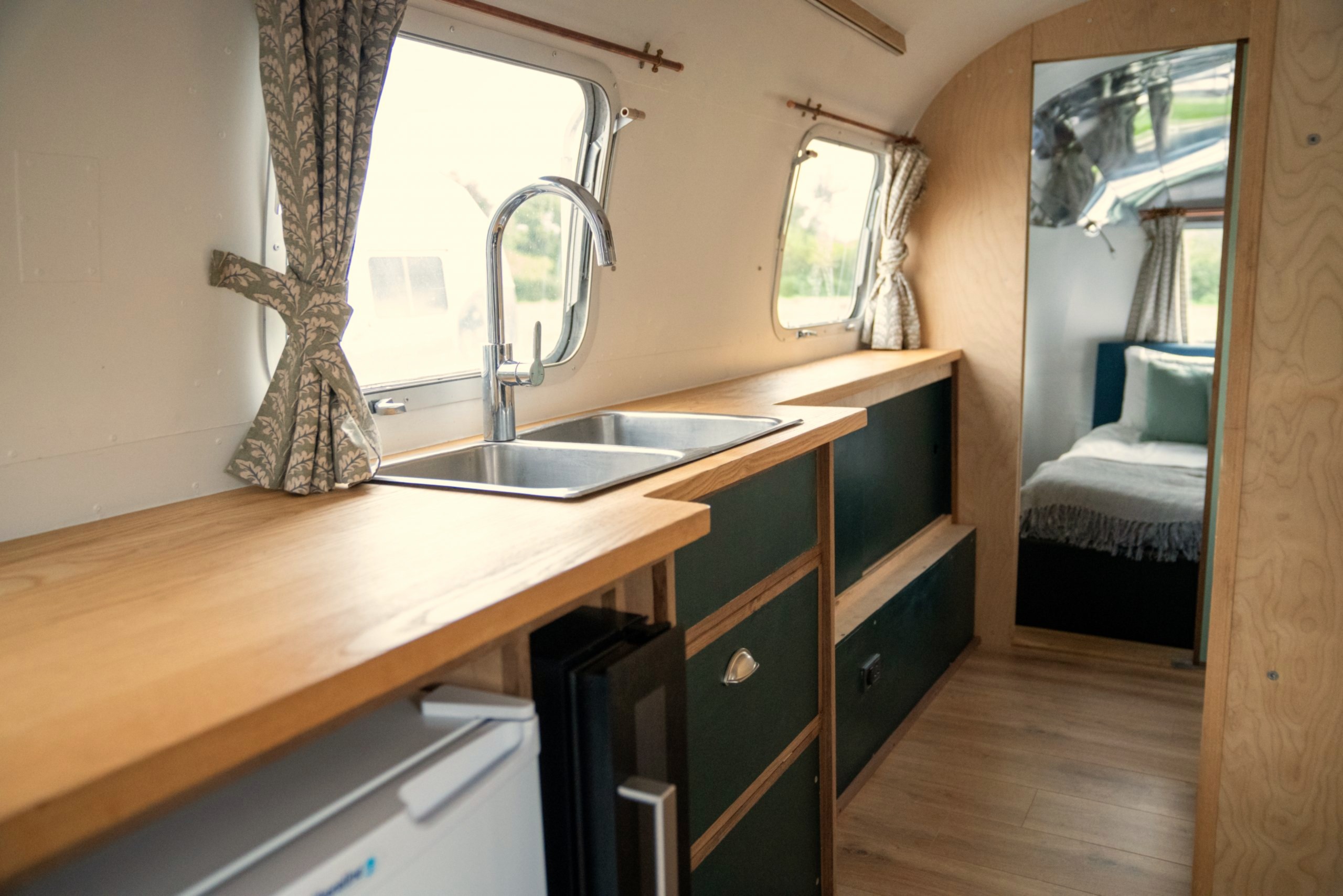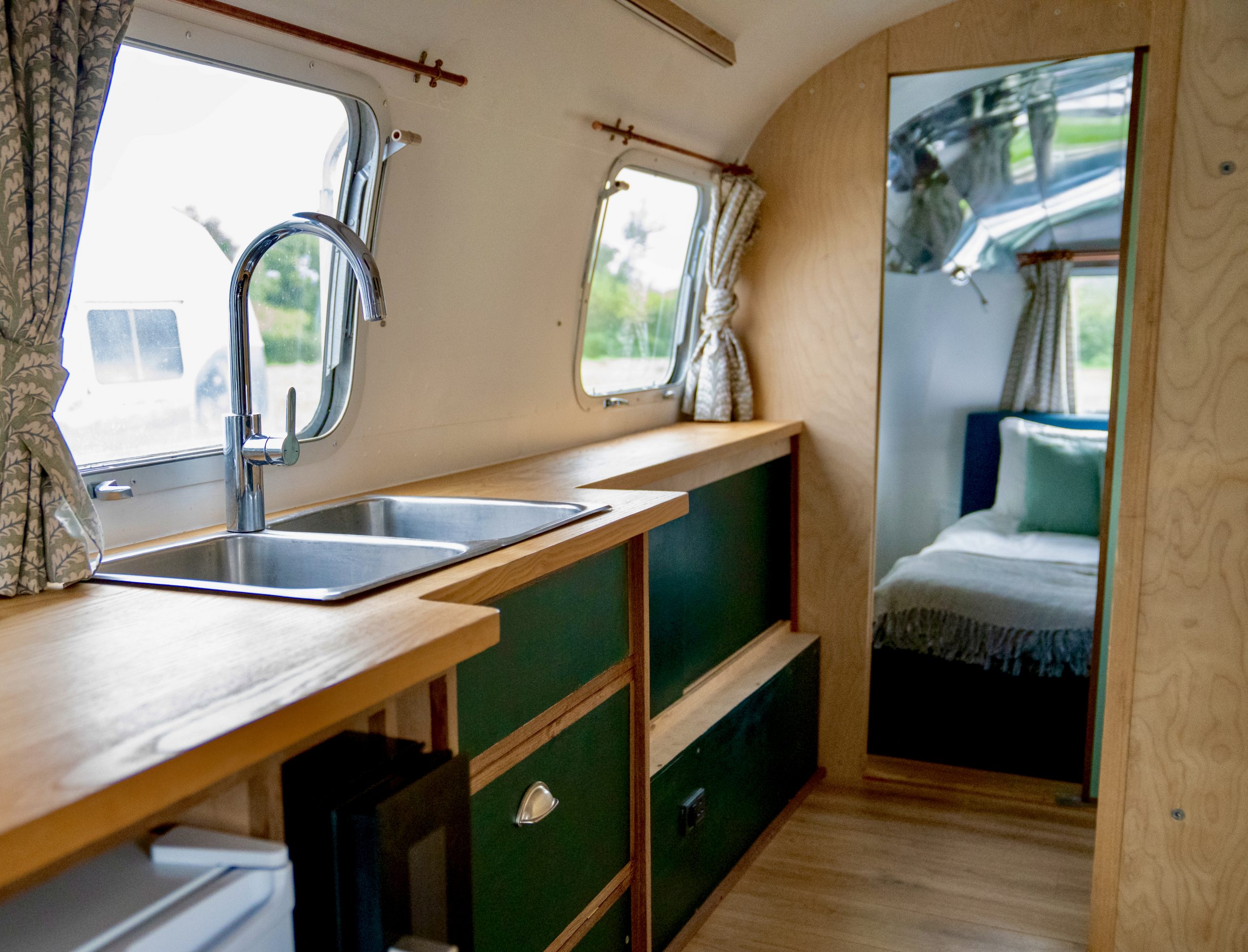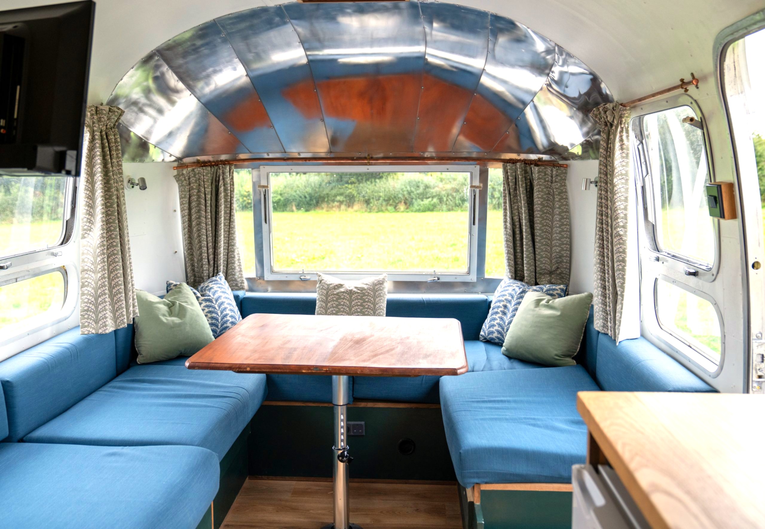 Airstream interior dimensions: 30 feet long (9.44 meters), 7’3” wide (2.25 m), 6’5” high (2 m)