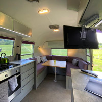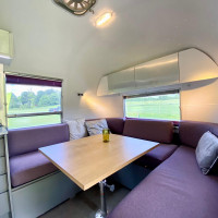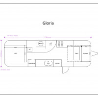 Airstream interior dimensions: 25 feet long (7.6 meters), 7’3” wide (2.4 m), 6’5” high (2 m)