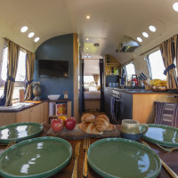 Airstream interior dimensions: 25 feet long (9.44 meters), 7’3” wide (2.25 m), 6’5” high (2 m)