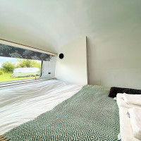 1 fixed double Size bed (4”6 wide x 6’3 long / 1.52 m wide x 1.97 long)