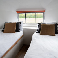 2 fixed single beds (2’ 6″ wide x 6’ long / 75cm wide x 2m long)