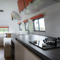 Airstream interior dimensions: 22 feet long (6.6 meters), 7’0” wide (2.2 m), 6’5” high (2 m)