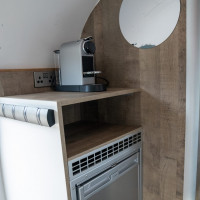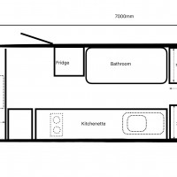 1 Double Bed (4’6” wide x 6’5” long /1.35m wide x 2m long), converts from dinette